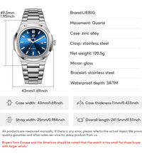 LIEBIG Fashion Calendar Movement Quartz Watches Lady Stainless Steel Strip Watch Business Waterproof Wristwatches For Men Women