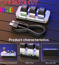 Mini 3-Key Cut Copy Paste Ctrl X C V Shortcut RGB Macro OSU Keypad Programmable Mechanical Keyboard for Gaming or Working
